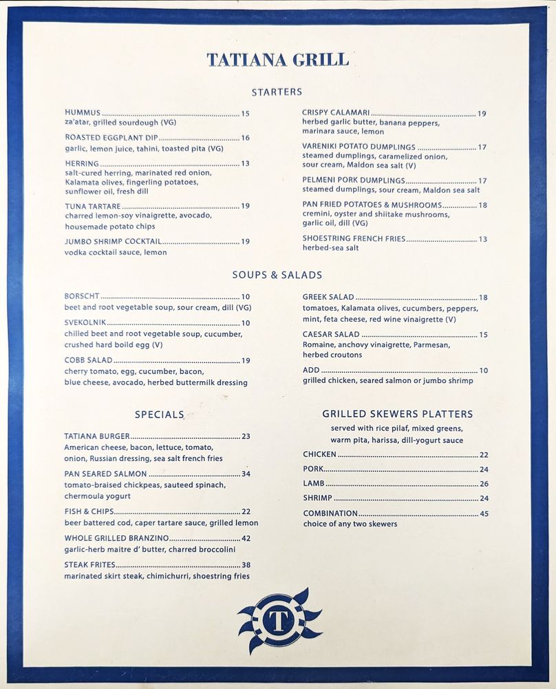 Introducing Tatiana Grill, a classy American restaurant located in Brooklyn, NY. Offering a variety of amenities such as outdoor seating, full bar, and free Wi-Fi, Tatiana Grill is perfect for lunch or dinner with family and friends. The menu features delicious options like the Cobb Salad with cherry tomatoes, bacon, and blue cheese, the Salmon with chickpeas and chermoula yogurt, and the flavorful Pelmeni Pork Dumplings. Start your meal off with the Jumbo Shrimp Cocktail or the Roasted Eggplant Dip for a tasty appetizer. The relaxed atmosphere and attentive waitstaff make dining at Tatiana Grill a delightful experience. Don't miss out on trying their signature dishes and savory flavors during your visit.